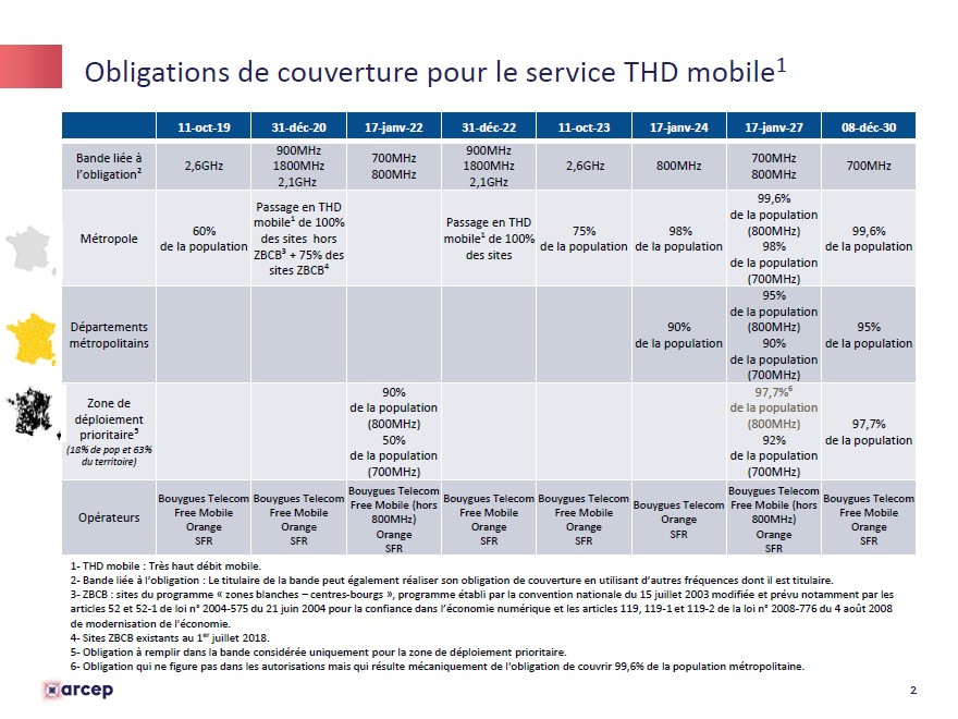 A cela s’ajoute l’obligation de déploiement concomitant (c’est-à-dire via des fréquences attribuées à d’autres opérateurs) entre les territoires :